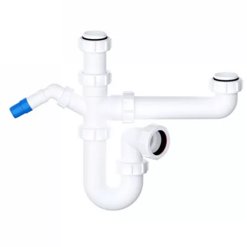 Quality polypropylene 40mm Bowl and half kit. The kit comes complete with everything required to connect your bowl and a half sink to the waste outlet. It also has x1 spigot giving the option of attaching a washing machine or dishwasher.