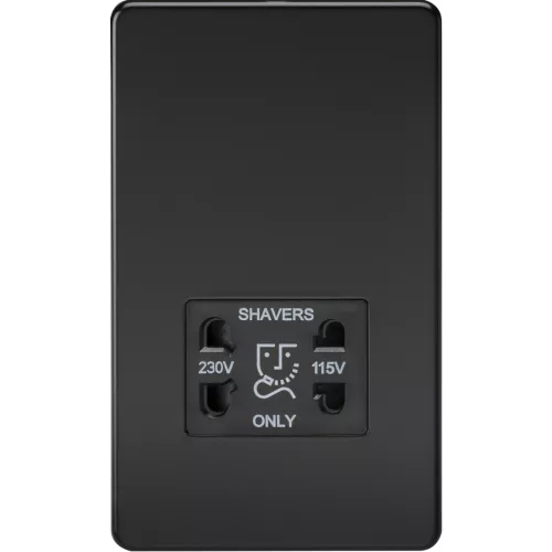 APS14114 115V/230V Dual Voltage Shaver Socket - Matt Black with Black Insert