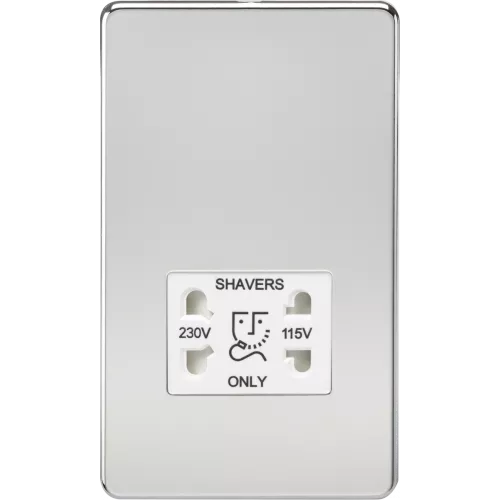 APS14121 115V/230V Dual Voltage Shaver Socket - Polished Chrome with White Insert