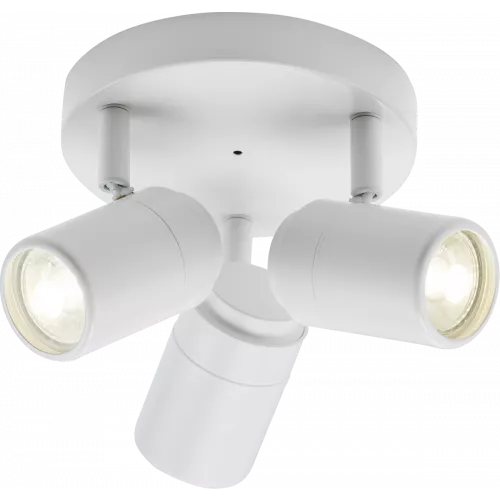 Triple IP44 GU10 spotlight, in a smooth matt white finish. Ideal for domestic and commercial use. Also available in single and triple bar spotlight, in matt white, matt black and polished chrome finish.