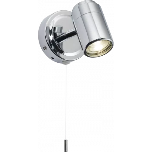 Single IP44 GU10 wall light, in polished chrome finish. Ideal for domestic and commercial use. Also available in triple bar and triple spotlight, in polished chrome, matt black and matt white finish.