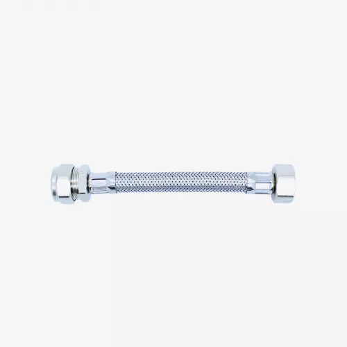 This hose features a 15mm compression fitting at one end and a 1/2" female BSP thread at the other, providing a secure and versatile connection suitable for both commercial and residential installations. The stainless steel outer braid delivers excellent protection and longevity, while the synthetic rubber inner tube ensures consistent flow and dependable operation.