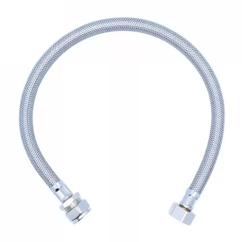- A 500mm long stainless steel braided flexible hose with a 15mm compression fitting at one end and a 1/2" female bsp thread at the other end. This hose has a 10 bar working pressure and a working temperature from -5°C to 90°C.