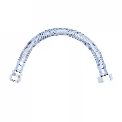 - A 300mm long stainless steel braided flexible hose with a 15mm compression fitting at one end and a 3/4" female bsp thread at the other end. This hose has a 10 bar working pressure and a working temperature from -5°C to 90°C.